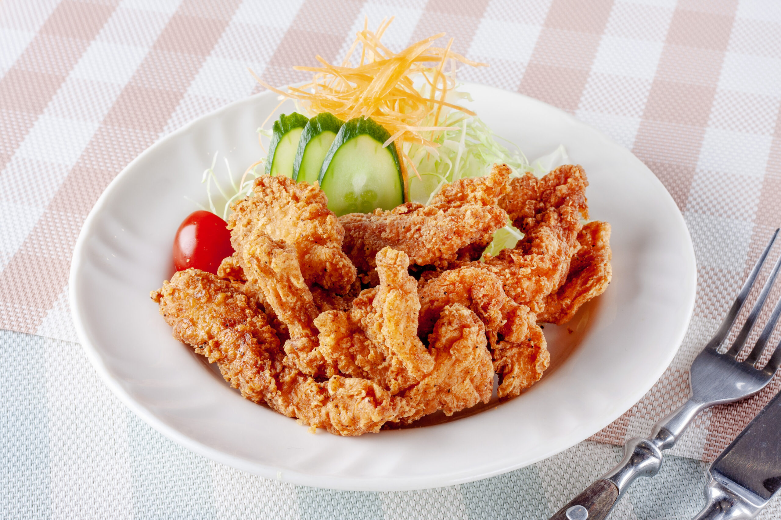 大山どりのむね肉を、サクサク衣のクリスピーチキンに仕上げました。